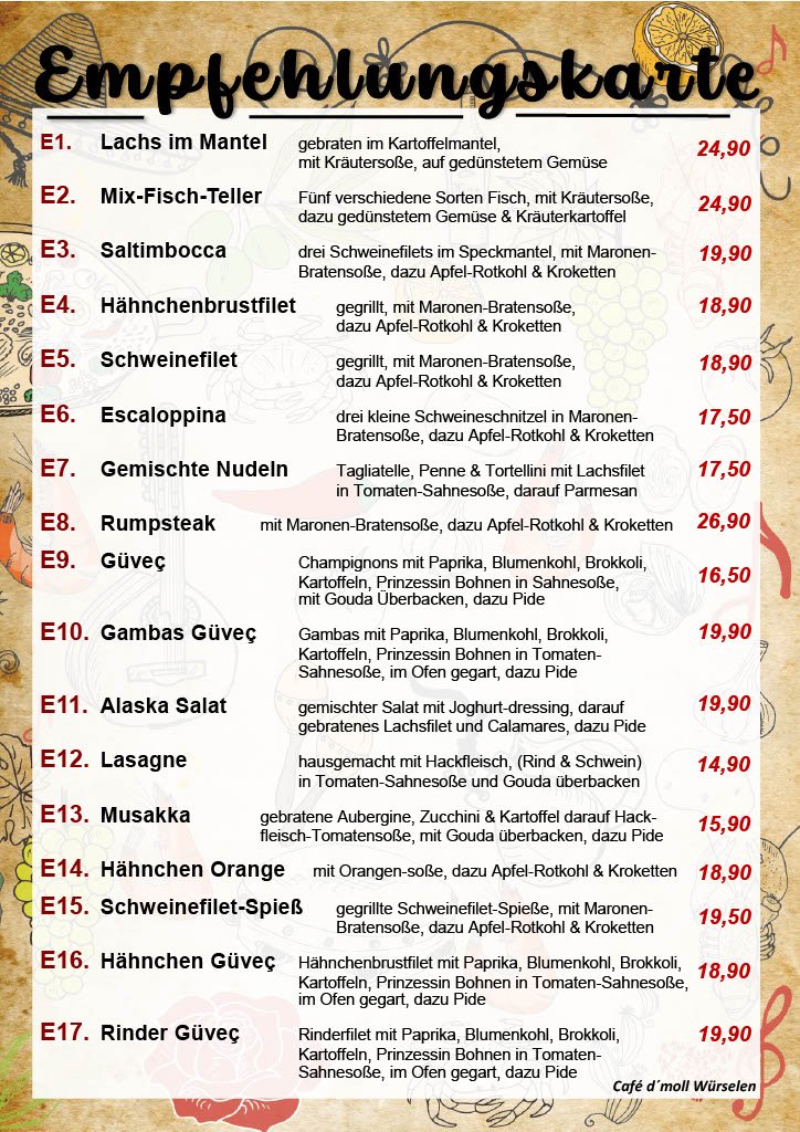 Für einen besseren Blick auf unsere Speisekarte, nehmen Sie ihr Handy quer ; )